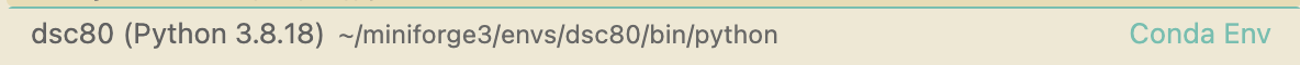 If youβre using VSCode, you should select the Python kernel corresponding to the dsc80